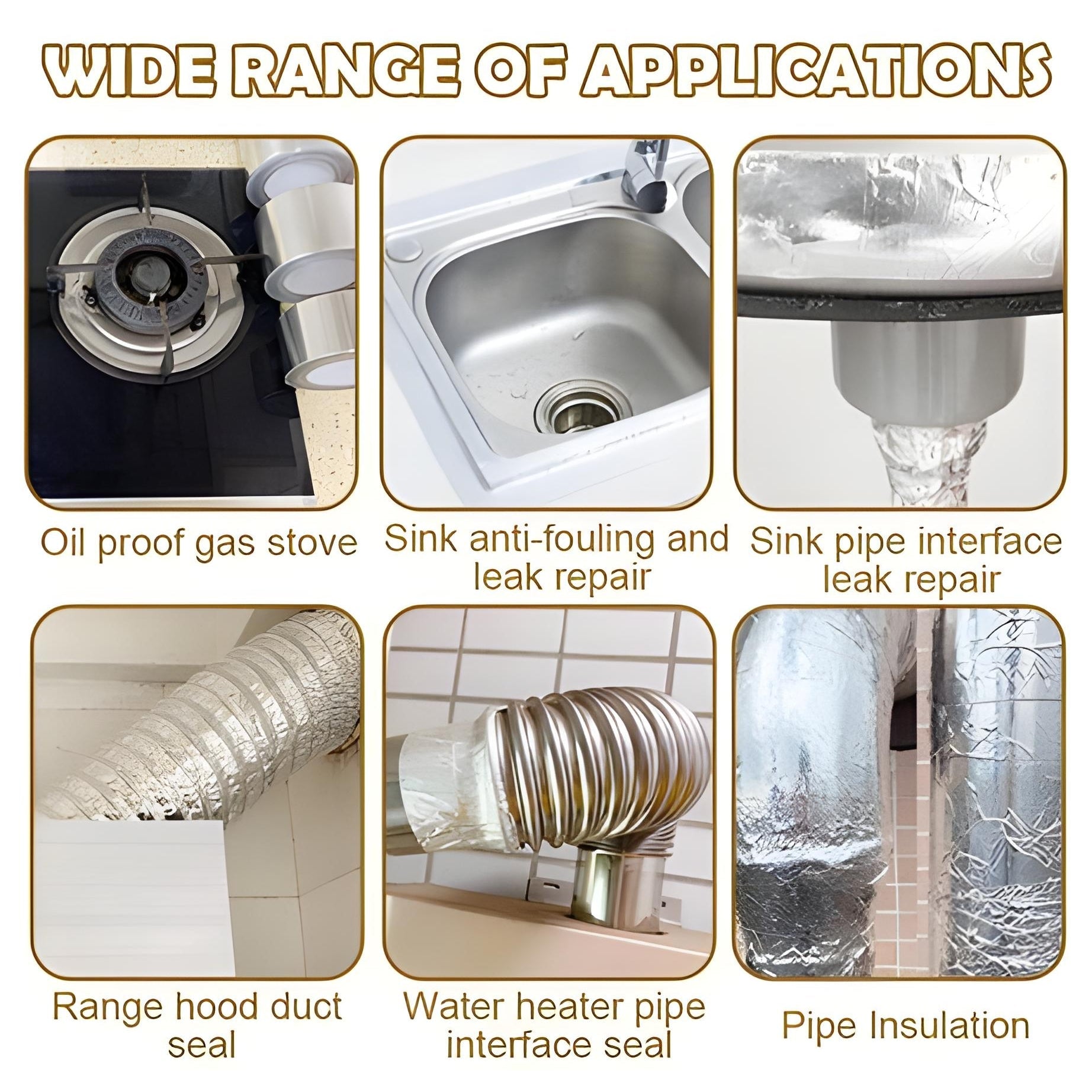 Seal & Repair: Foil tape is used for repairing metal, plastic, ceramic, glass products. It is also used for sealing and repairing air conditioning ducts, range hood ducts and ventilation pipes.